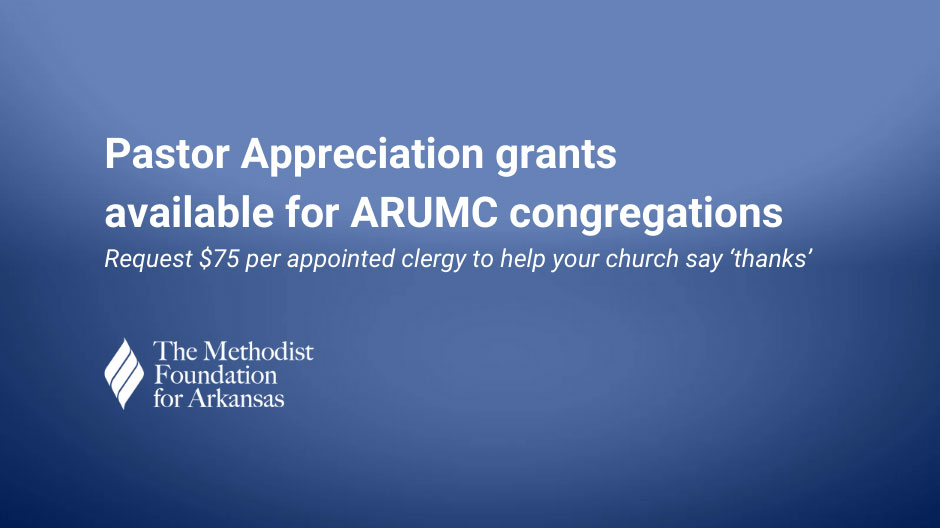 In October, we celebrate Pastor Appreciation Month as a way to honor clergy for their faithful leadership, care, and service. As a small token, the Methodist Foundation for Arkansas is offering $75 grants to assist congregations in the Arkansas UMC in recognizing their pastor during Pastor...