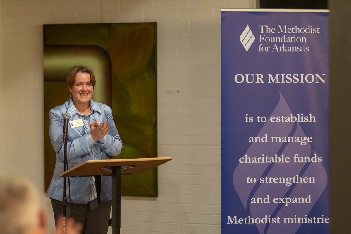 Members of the Methodist Foundation for Arkansas Bishops’ Club gathered Thursday evening, October 30, 2025, at Mount Sequoyah Center in Fayetteville, to share fellowship and hear from keynote speaker Jeff Quick, CEO of the Food Bank of North Central Arkansas.
