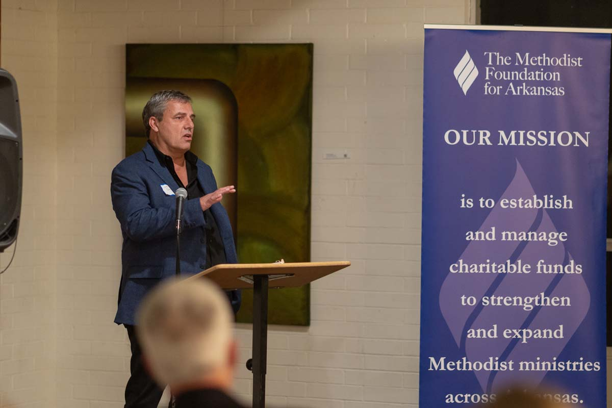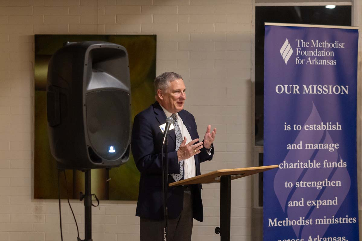 Members of the Methodist Foundation for Arkansas Bishops’ Club gathered Thursday evening, October 30, 2025, at Mount Sequoyah Center in Fayetteville, to share fellowship and hear from keynote speaker Jeff Quick, CEO of the Food Bank of North Central Arkansas.
